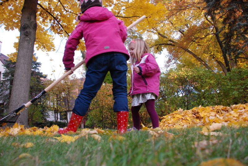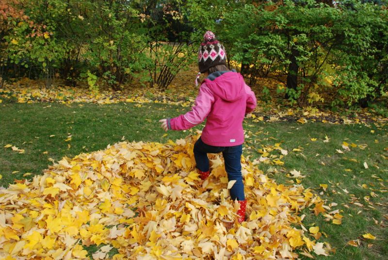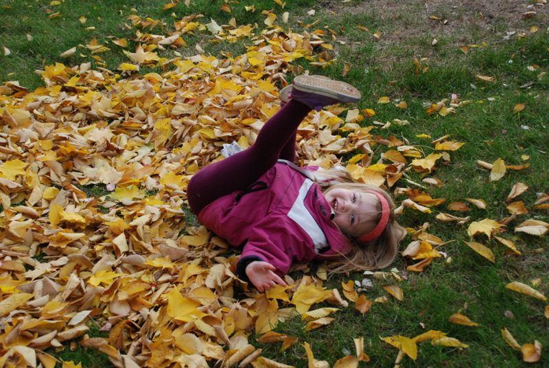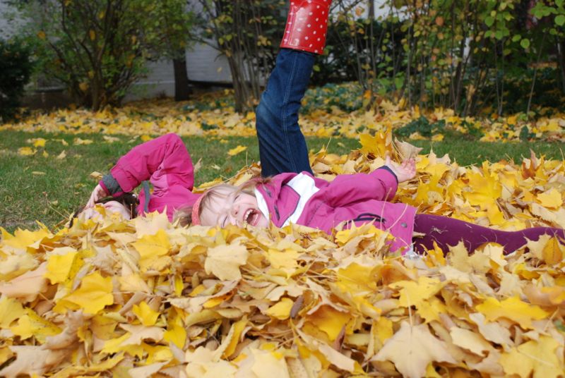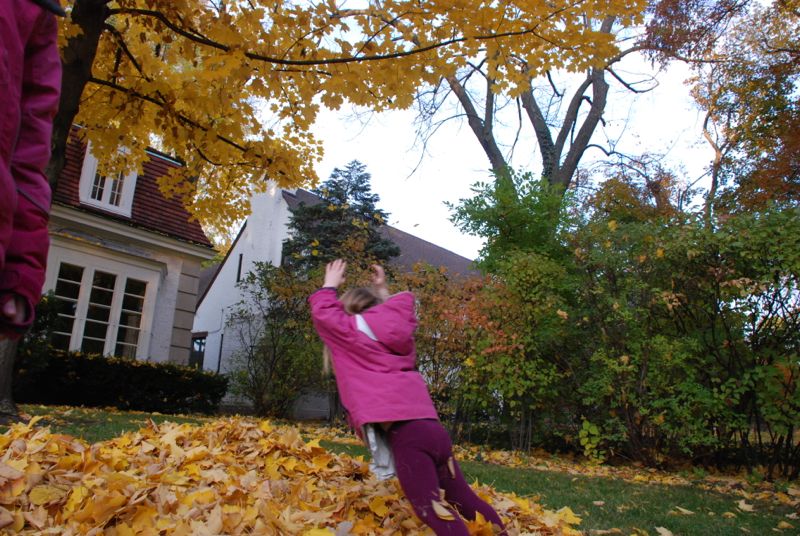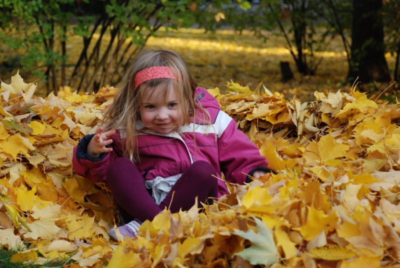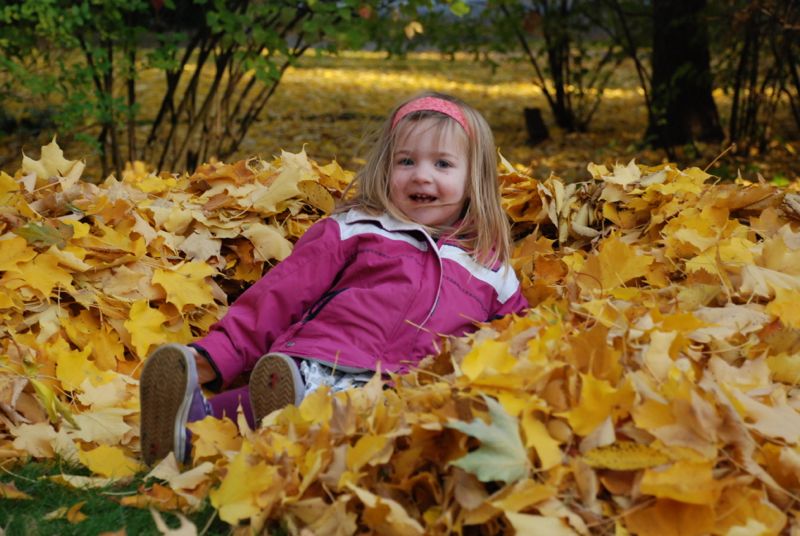 a big pile of golden leaves.