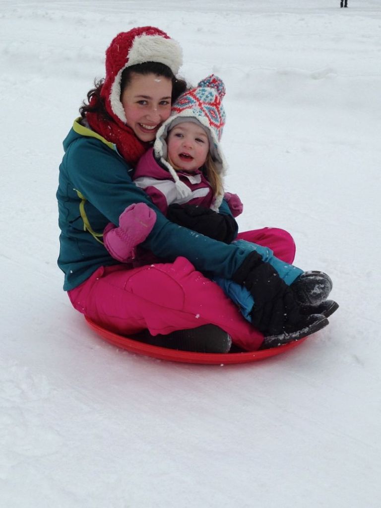 – sledding with cousins – watching Claire eat up all the attention from Maddie and Sophie – watching Bea love the snow