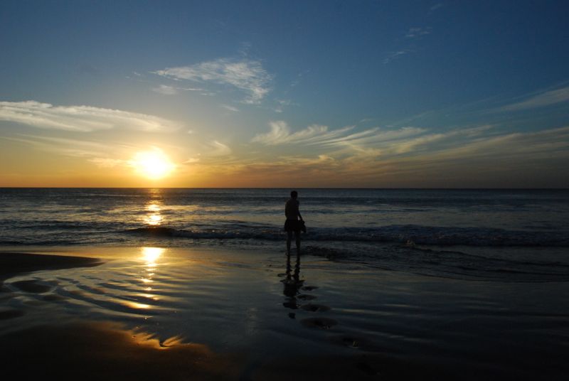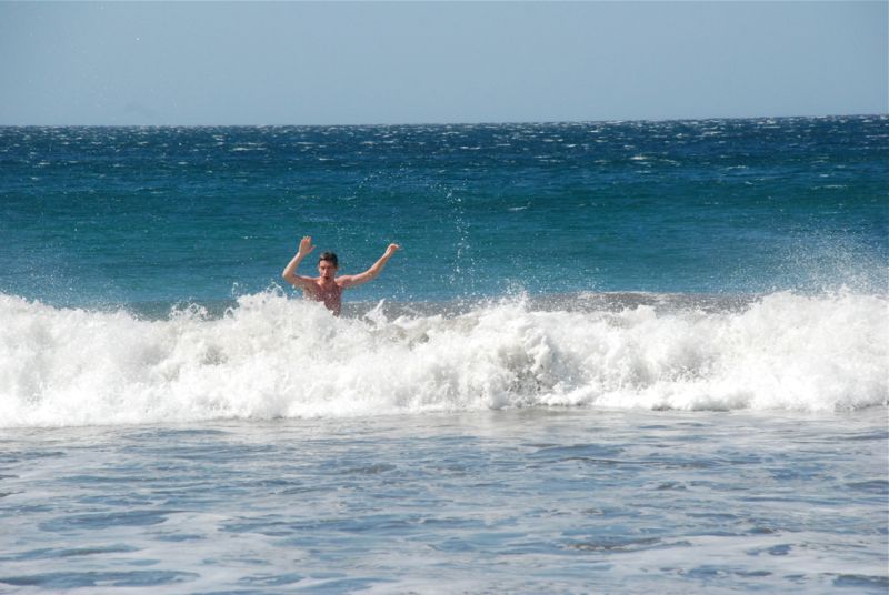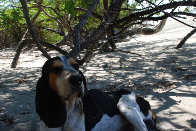 Costa Rica is teaming with dogs. They like to stand in the middle of the road like they own the place. This skinny old one sat down with us at the beach.