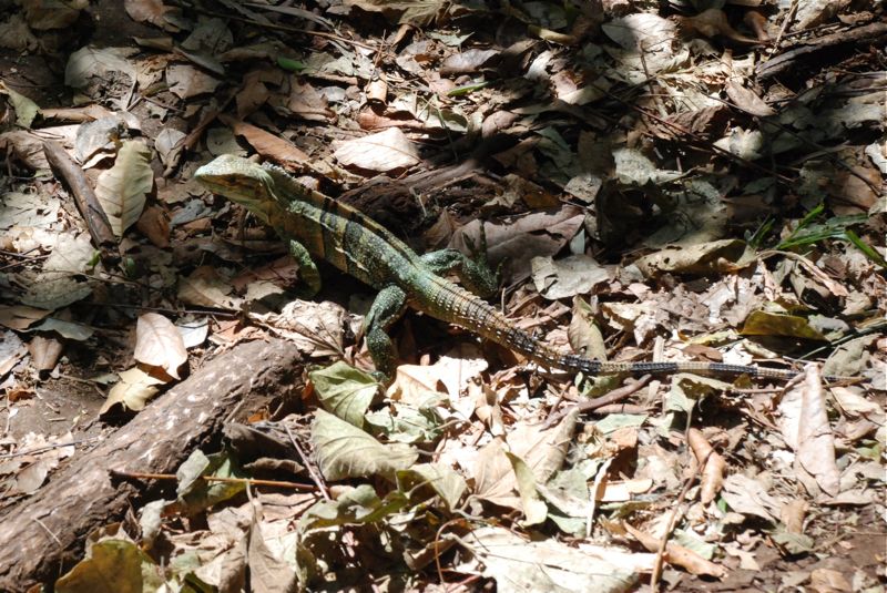 We saw lots of creatures on this trip. Lizards and iguanas, monkeys, crabs, some sort of overgrown guinea pig type thing, tons of butterflies, bats, colorful birds, big toads, grasshoppers the size of my hand, columns of busy ants, and one great big spider – ewwww!
