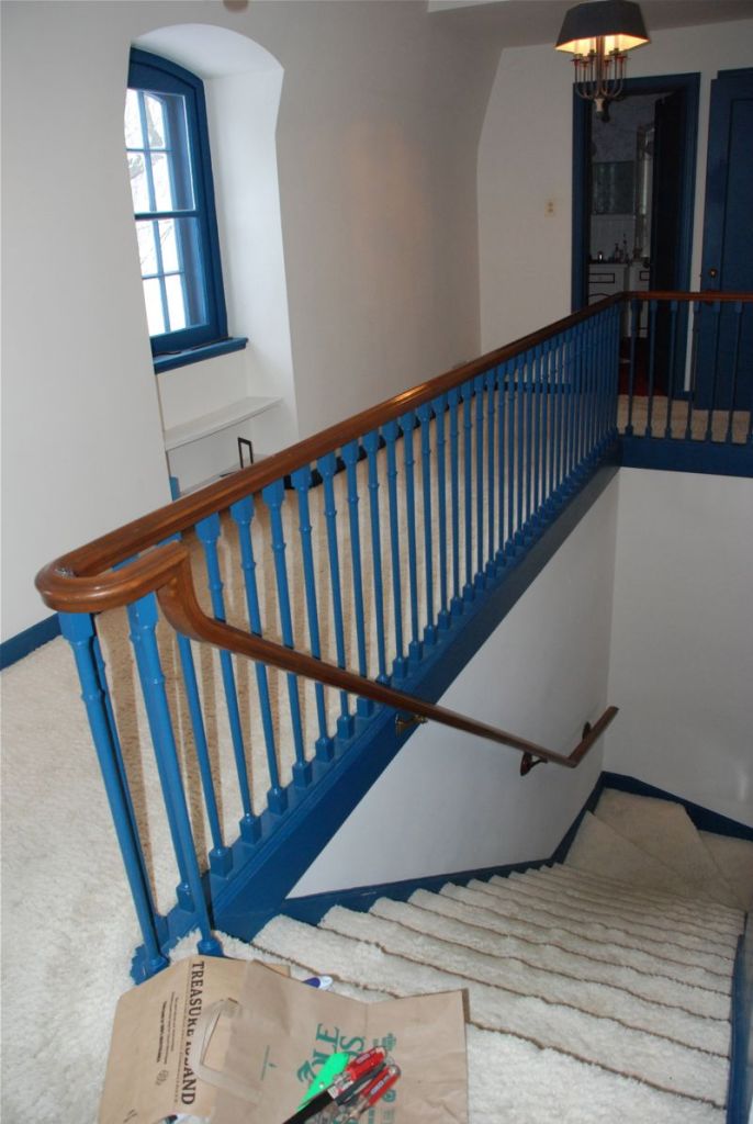 Unfortunately the wood on the stairs does not match the rest of the wood. Not sure what we will do. Maybe it can be made to match – or maybe I will paint it to match the trim. I’m thinking we will eventually have a carpet runner on the stairs.