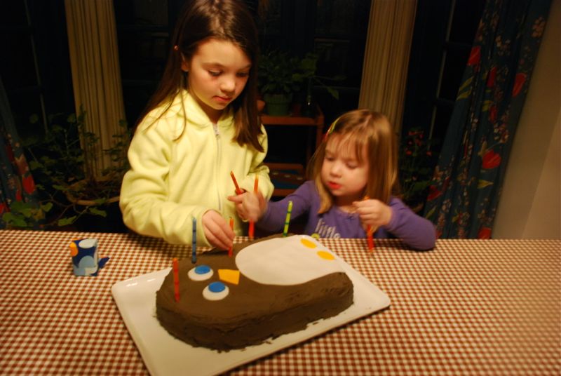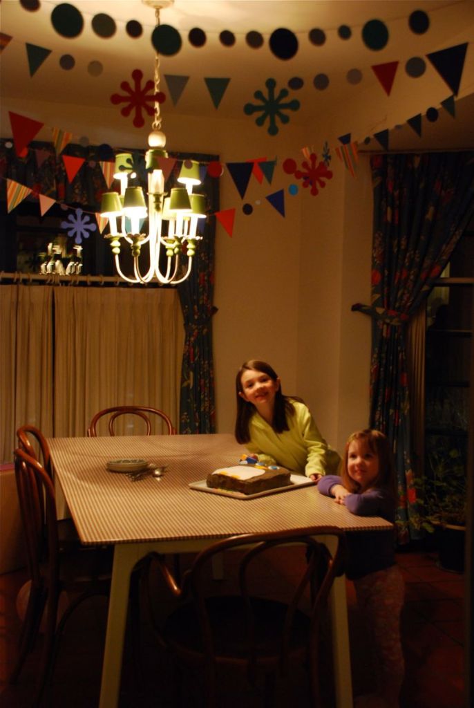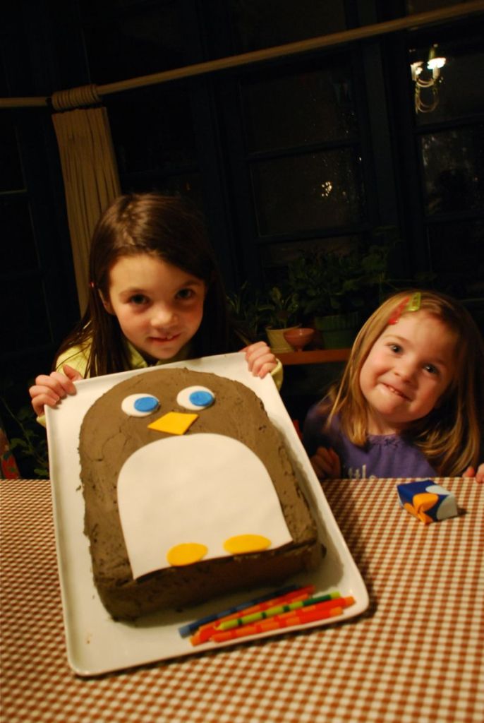 Bea turned seven today. She had a really good day at school and was all smiles when she got home. Her classmates made a book – each of them writing and making a drawing of what they would like to give her for her birthday. 99% of the pages were filled with pictures of penguins. A real penguin, a penguin world, a penguin cake… all written in cute first grader spelled words. So she is still in her penguin stage and we wonder if a day will come when she isn’t obsessed by all things penguin. This has been a big year for Bea – I think she has tackled lots of scary things. One thing that I will remember about this year has just come about recently – reading. Nothing compares to the swell of pride I’ve felt listening to her tentative quiet voice saying words I thought she didn’t know. It’s one of those things that catches you by surprise – just how proud you can feel. Brian and I filled her bed with balloons last night and I made her a penguin cake. It’s nice that it still feels easy to please her with simple things and it’s fun to watch her excitement. She’s having some friends over this weekend for a party.