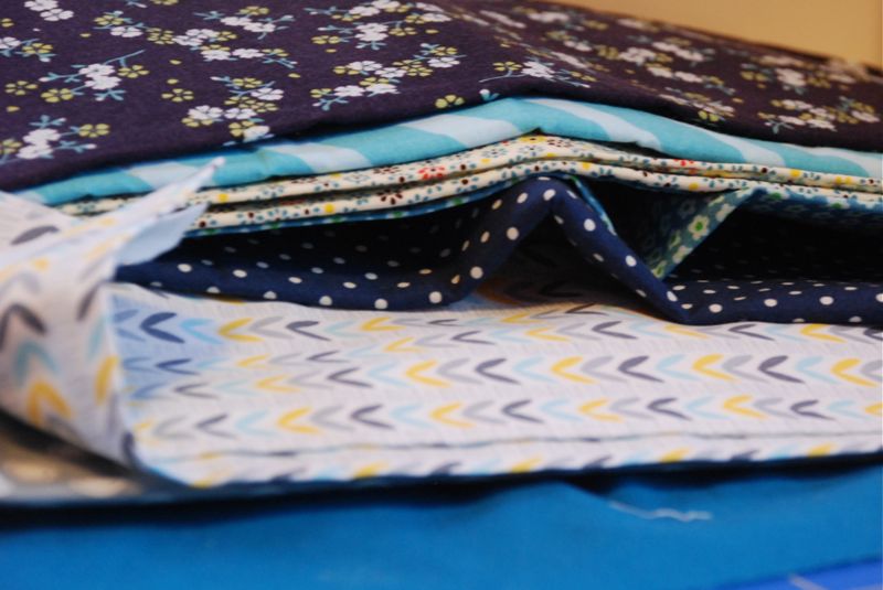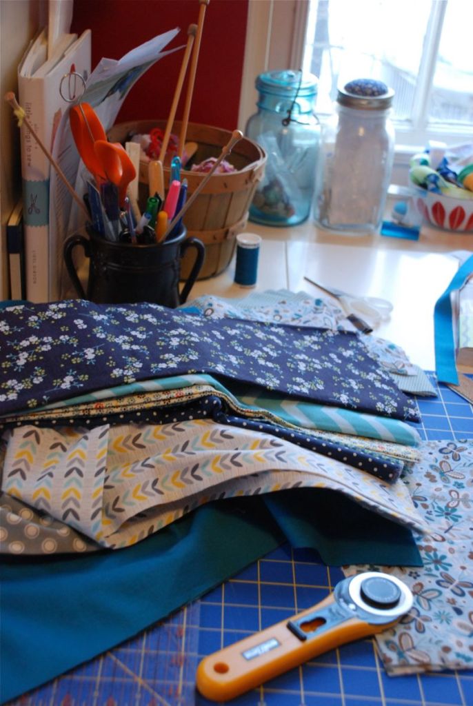 I’ve been feeling like starting another quilt and Bea has been asking for one ever since I made Claire’s. So I bought lots of prints in Bea’s favorite color (blue) and I finally started the piecing today. I always find it funny that we buy yards of fabric, cut it into pieces and then sew it back togehter – what a silly thing to do. But spending time on that sillieness keeps me sane.