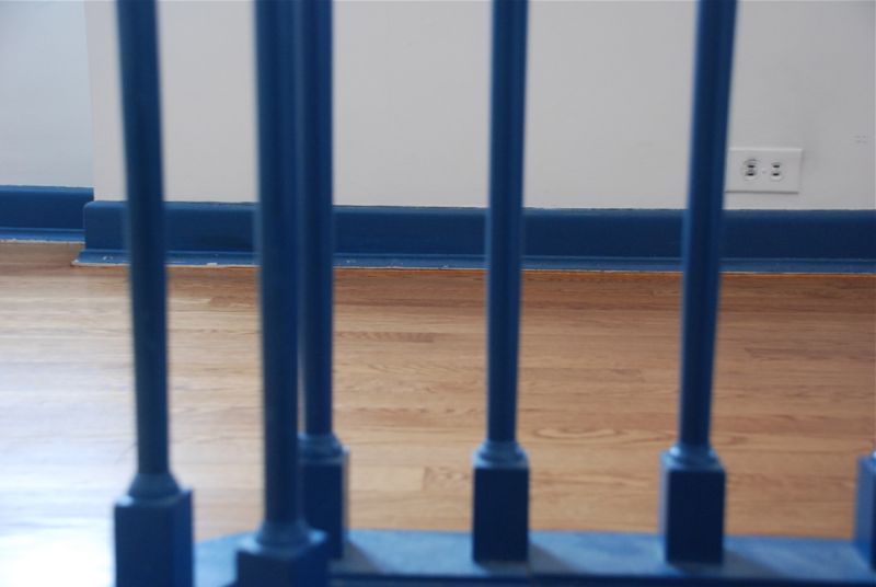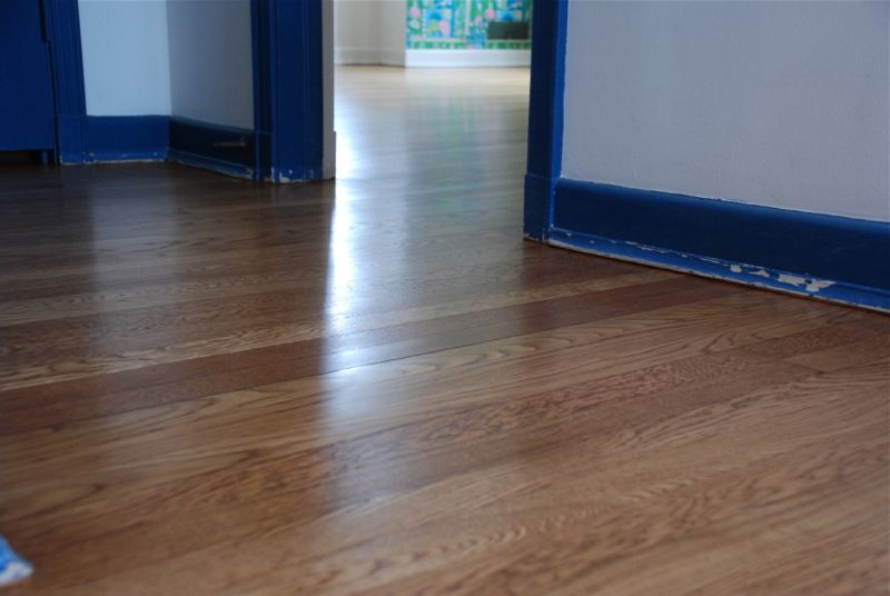 Well, the work on our floor upstairs is done. We are just waiting for the finish to dry and then we can move all the furniture back up there. I can only peek from the stairs, but I think it looks really nice. Just having everything clean and even througout all the rooms is great. Here are a couple photos that I took without being able to walk up there.