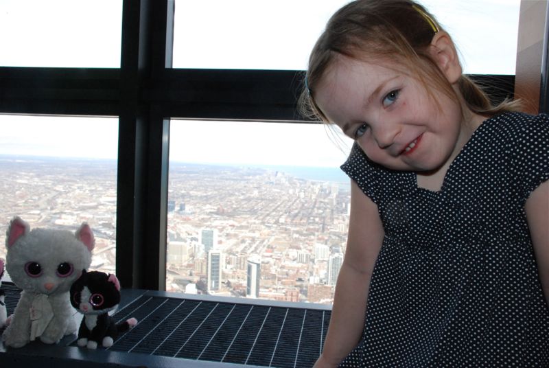 Brian left for Vietnam on Saturday and he won’t be back for a few days yet. The girls and I decided to go down to the city and do some touristy things. First we hit the Sears/Willis Tower observation deck. 103 floors up – a good thing to do without Brian because he doesn’t like heights.