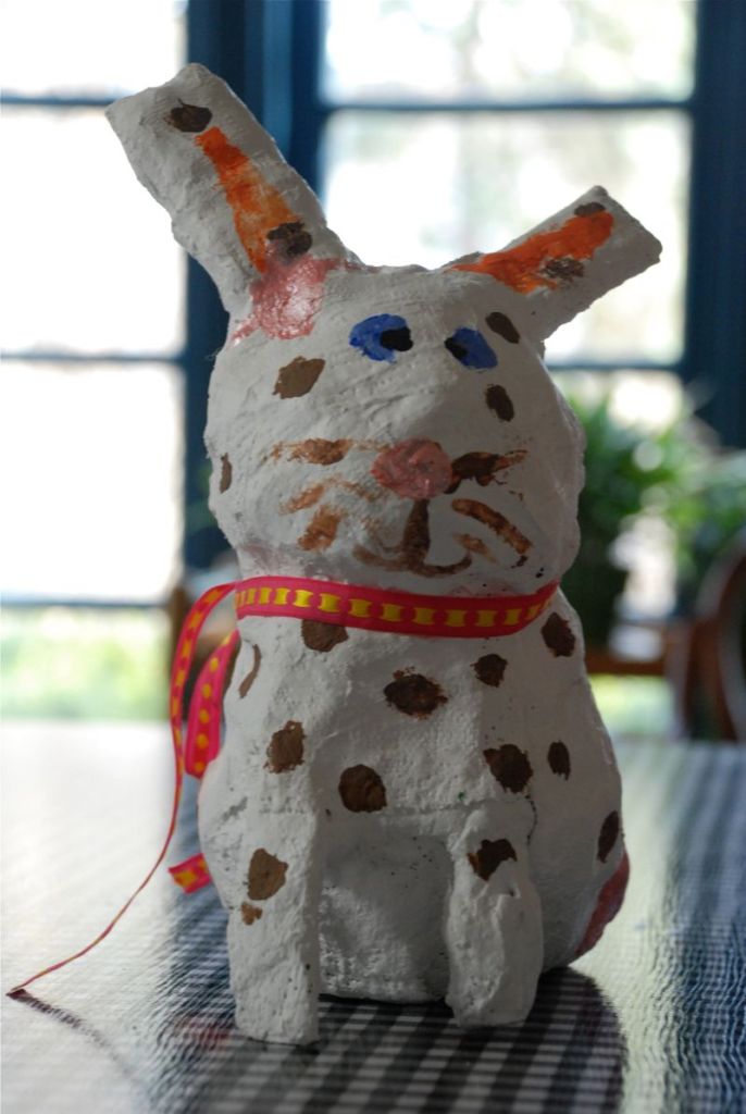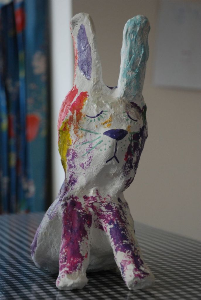 Here’s the bunny that Bea made, a color blocked happy hare: