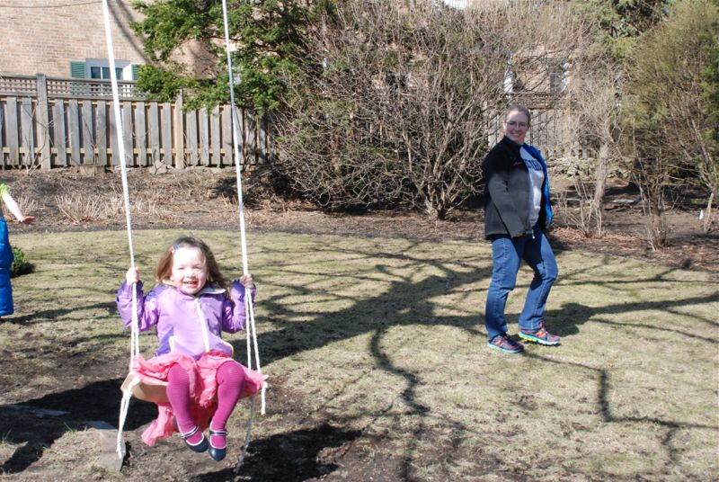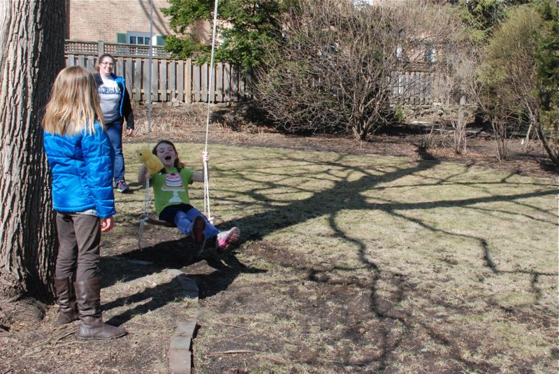 We finally put up our swing. It’s the swing that I bought before I even knew if we had a tree to hang it in. Jenna was kind enough to help us break it in.