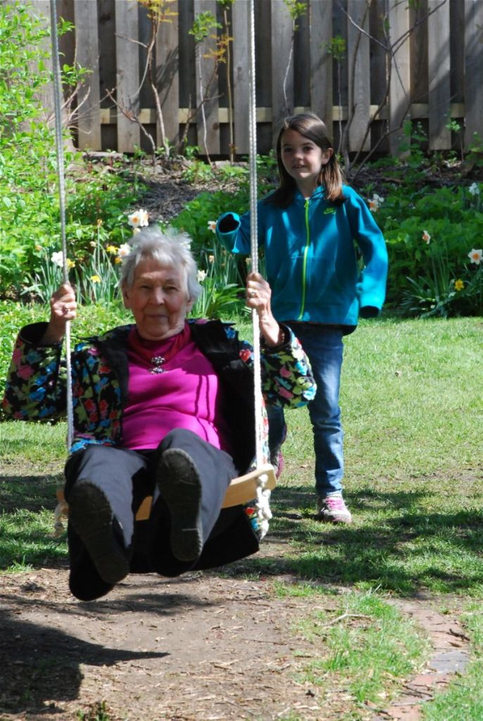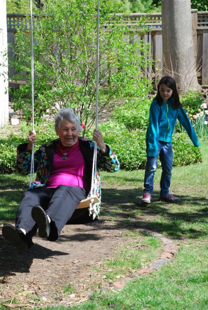 Grandma Dice is the epitome of young at heart – she tried out our swing and Bea gave her a push.
