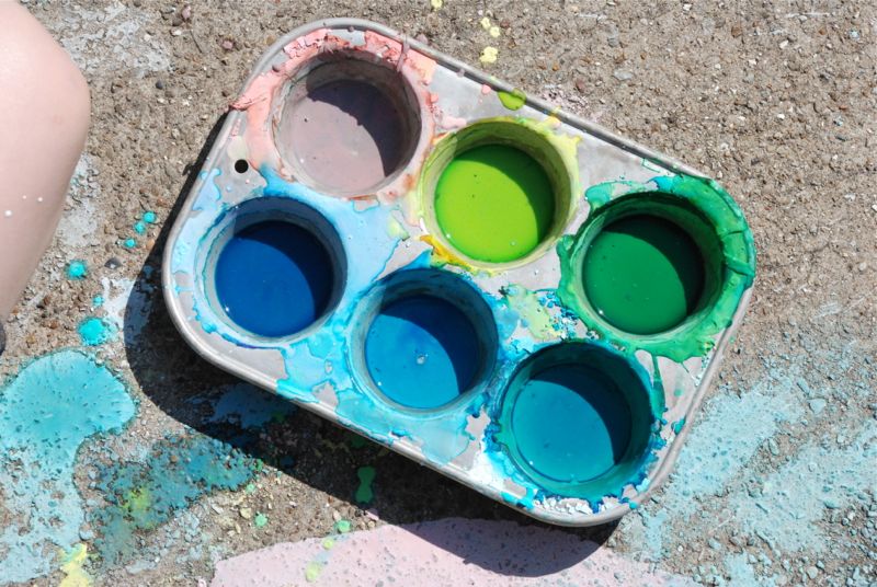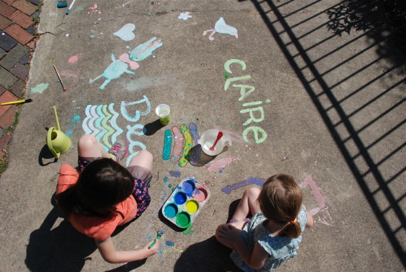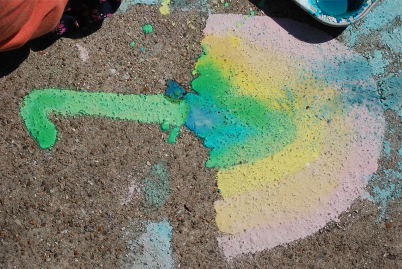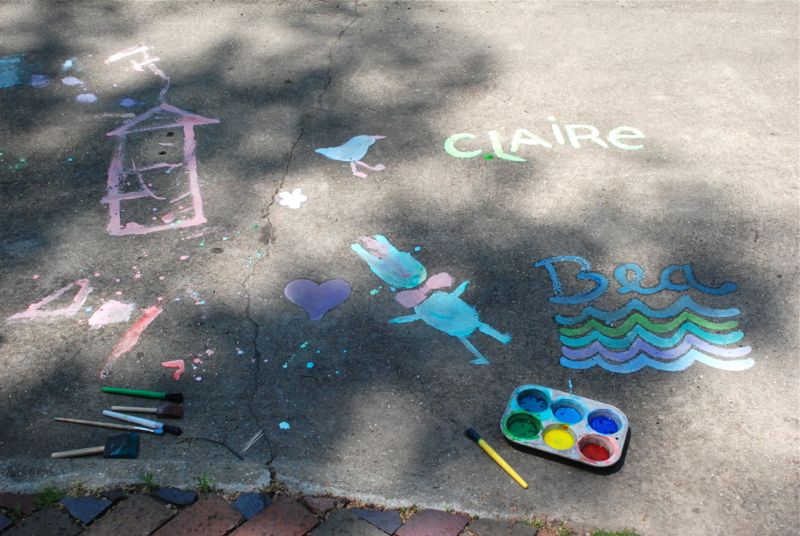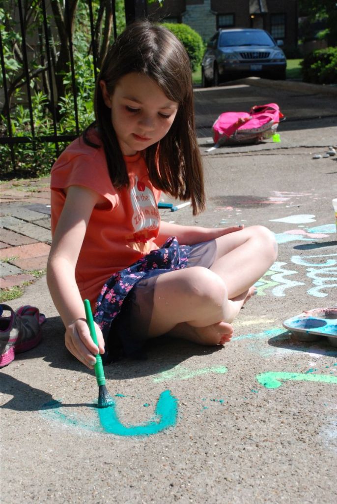 We tried making and using chalk painting today. It gets two thumbs up from all of us. We mixed one cup corn starch and one cup water then added food coloring. Couldn’t be easier.