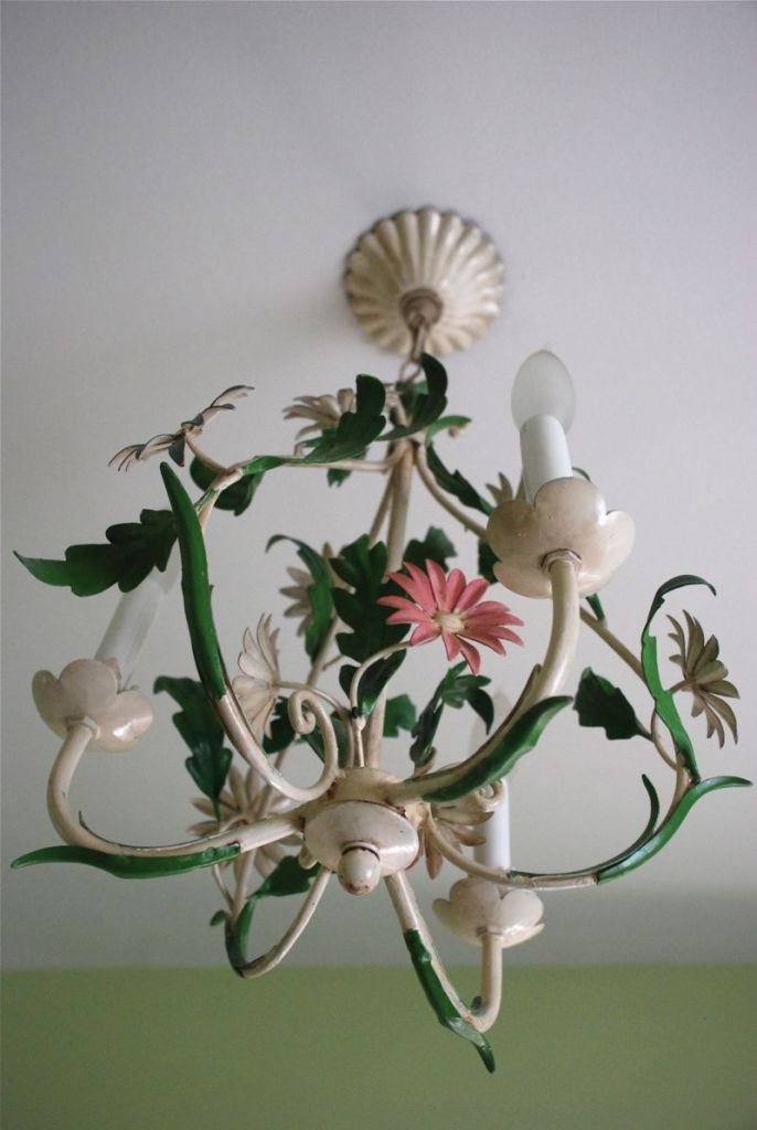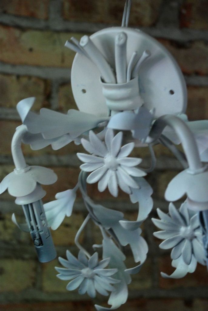 After months of putting it off (and waiting for the weather to be warm enough for painting in the garage) I finally started painting the light fixtures that will go into Bea and Claire’s bathroom. They used to be painted in many colors and they used to be in my bathroom. They looked kindo of cool hanging in the garage.