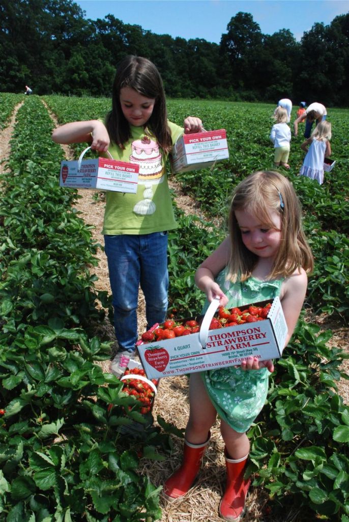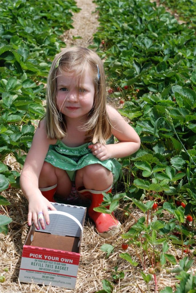 Last week the girls and I picked strawberries. They were really cute (the girls not the strawberries). I had to keep reminding Claire to pick just the good bright red ones. Bea was a great picker and at the end she got really excited when I said she could get another basket and fill it for her friend Mabel.