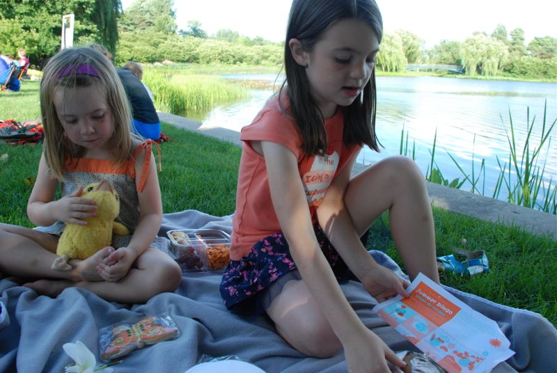 Tonight we went over to the botanic garden. We had a relaxing evening walk and then we had a picnic while we listened to a concert. It was lovely and breezy out. We only missed Brian – who is traveling.