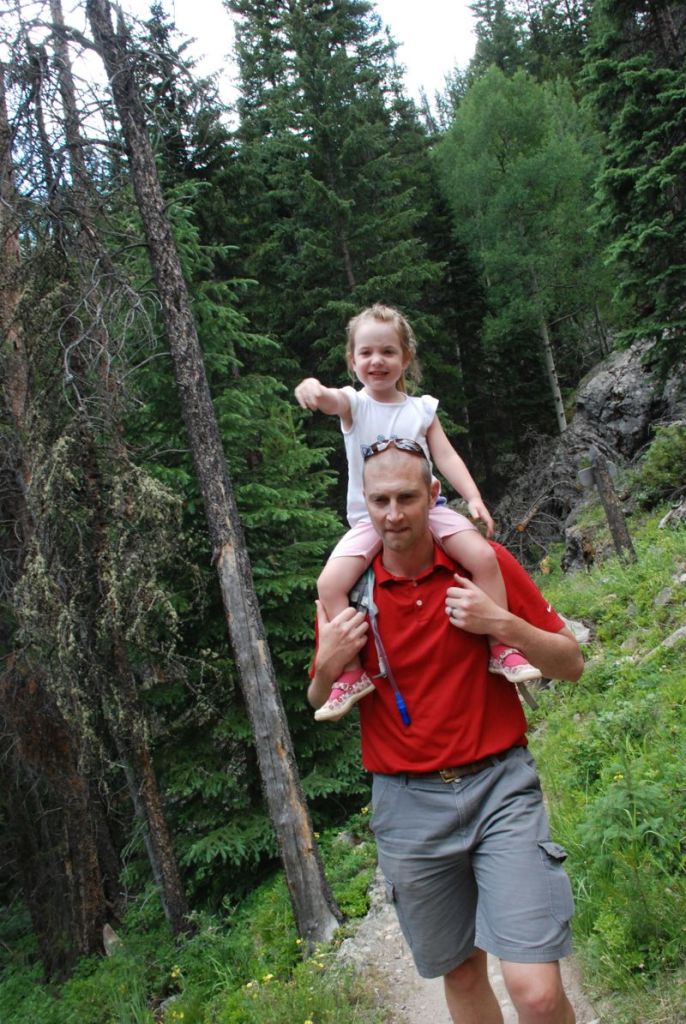 The second hike was a long sunny trip to a waterfall. Grandma and I bailed out part way through, but I was really proud that all the kids did it because it was around seven miles. Claire had lots of help from Brian and Dave’s shoulders.
