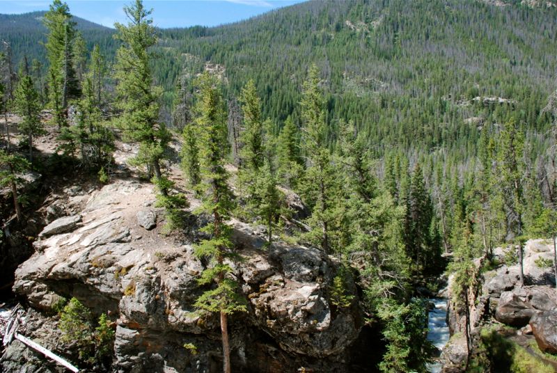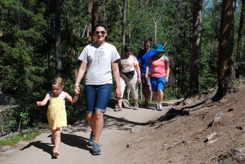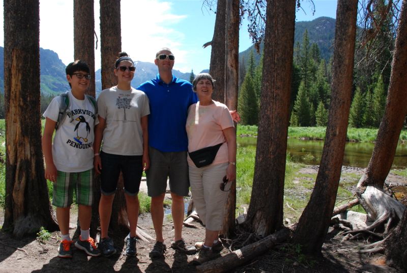 Then we drove to the mountains. We stayed in a house along Grand Lake on the edge of Rocky Mountain National Park. I got to spend lots of time reading on the house’s peaceful deck while hummingbirds visited a feeder next to me. It was heaven. Grand Lake is the largest natural lake in Colorado which is surprising because it’s little. The town of Grand Lake was sweet and had a kitchy western historical feel. The main street was lined with deck style wood sidewalks – it was fun to stroll along looking at touristy moose t-shirts in shop windows and stopping to buy ice cream.