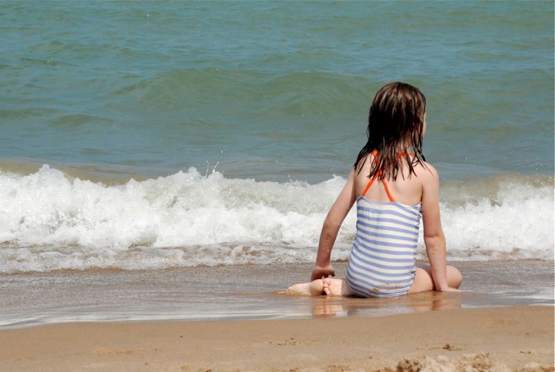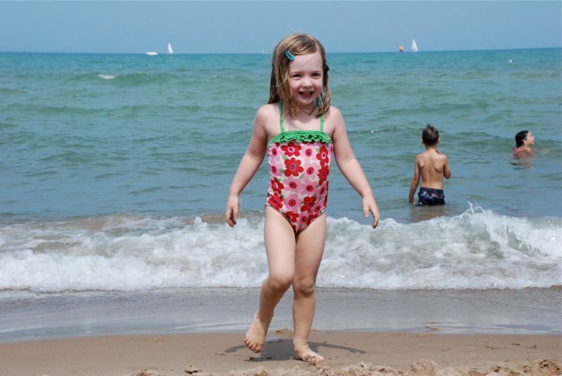 We fit in a couple more trips to the beach before the the first day of school. I feel so lucky to live just a few minutes away from beautiful Lake Michigan. We’ve been stuck in a weather pattern of scattered storms so the second trip to the beach was just for a walk between storms. The girls collected beach glass. They ran around in sand that had been flattened by heavy rain and had fun making the first footprints. I gazed at the big beautiful houses that line the beach on one side and the stormy colored lake and clouds on the other.