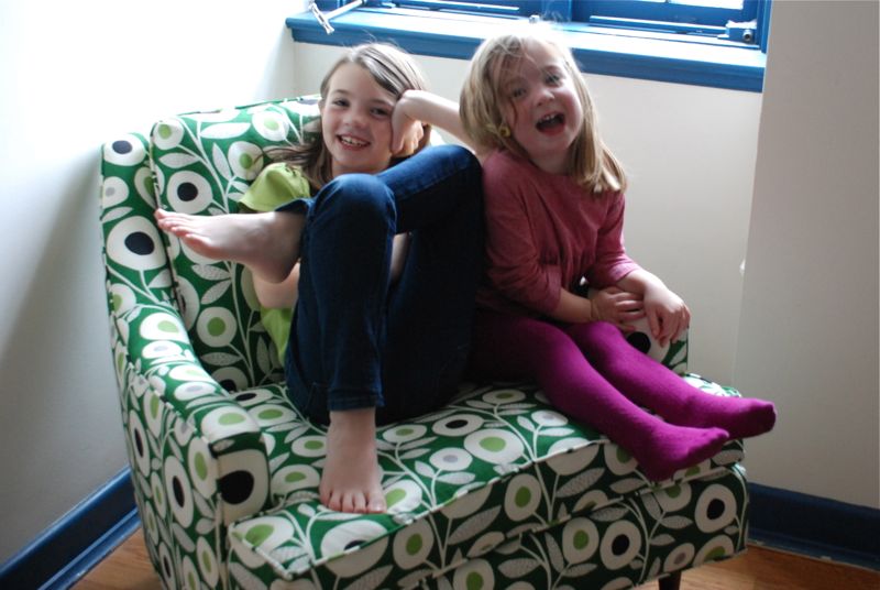 Also, I got my couch and chair back from the upholsterer. Yipee! Everytime I walk by them I’m a little surprised and very pleased. I was really happy with how my first upholstering projects turned out – thanks to the really talented and helpful people at Covers Unlimited! Sorry to sound like a comercial.