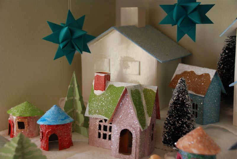 The girls and I made lots of glittery mini houses. There will be glitter hiding in our banquette cushions and nooks and crannies in the kitchen for a long time.