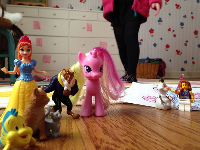Claire is suddenly SO into all these fantasy characters! Princess, sparkle, wands, evil forces, fancy dresses, long pink hair, spells, castles, kitty families. I try to play with her but it makes me yawn and the time drags by slowly. What’s the trick to getting into the play world of a four year old without falling asleep?