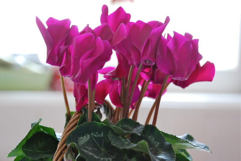 I love to see the flowers with a backdrop of snow out the window. Don’t you think their colors look different in the stark January light. I always think of my dad-in-law when I see cyclamen. He showed me what a beautiful plant they are.