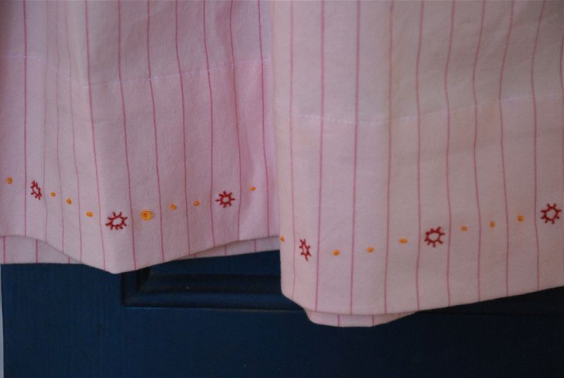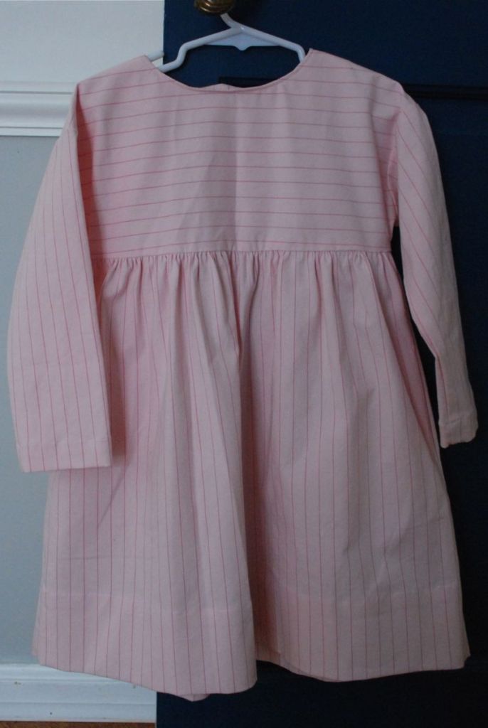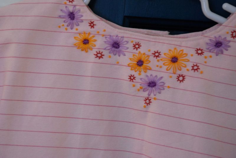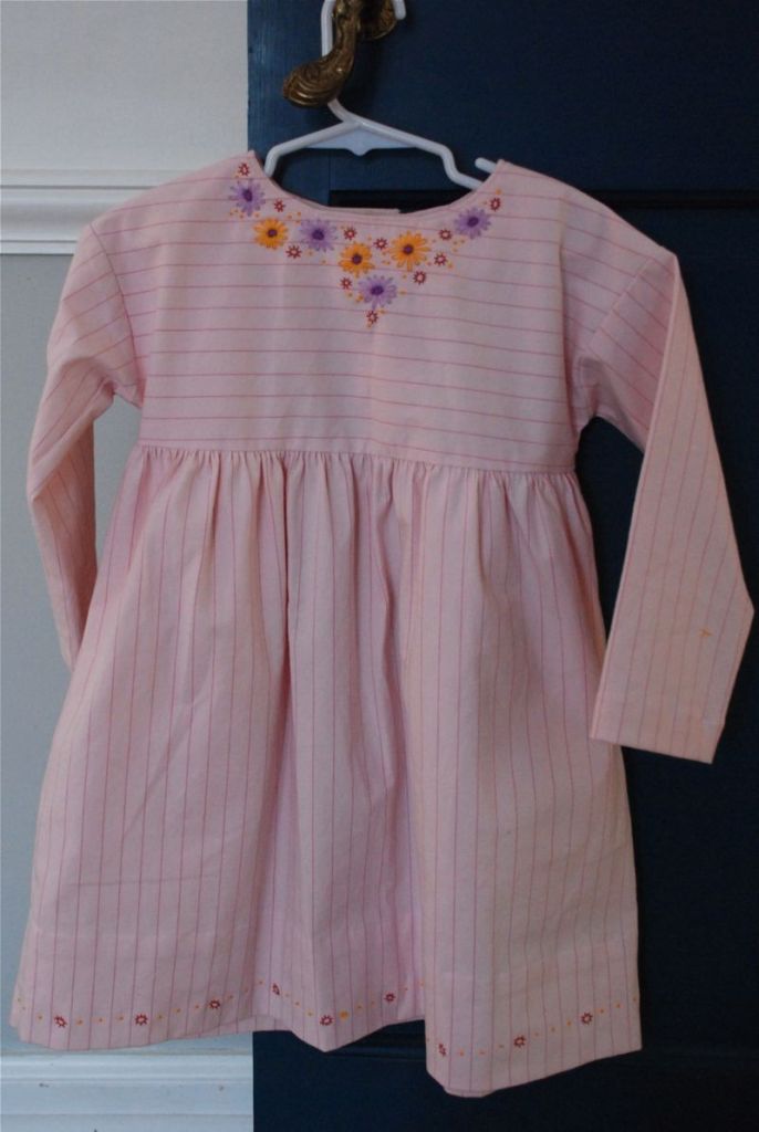I made a last ditch effort to make this dress appealing to Claire. I also needed to sit down and sooth myself with some embroidering after we had a couple tough mornings. Here’s the before: