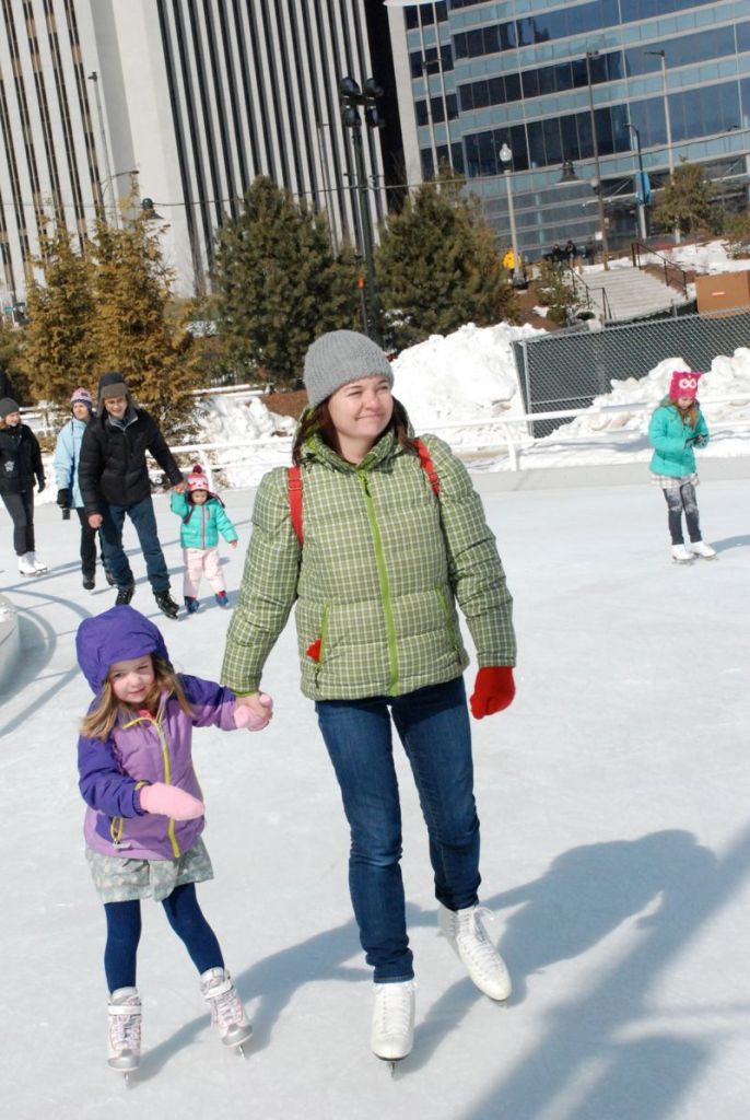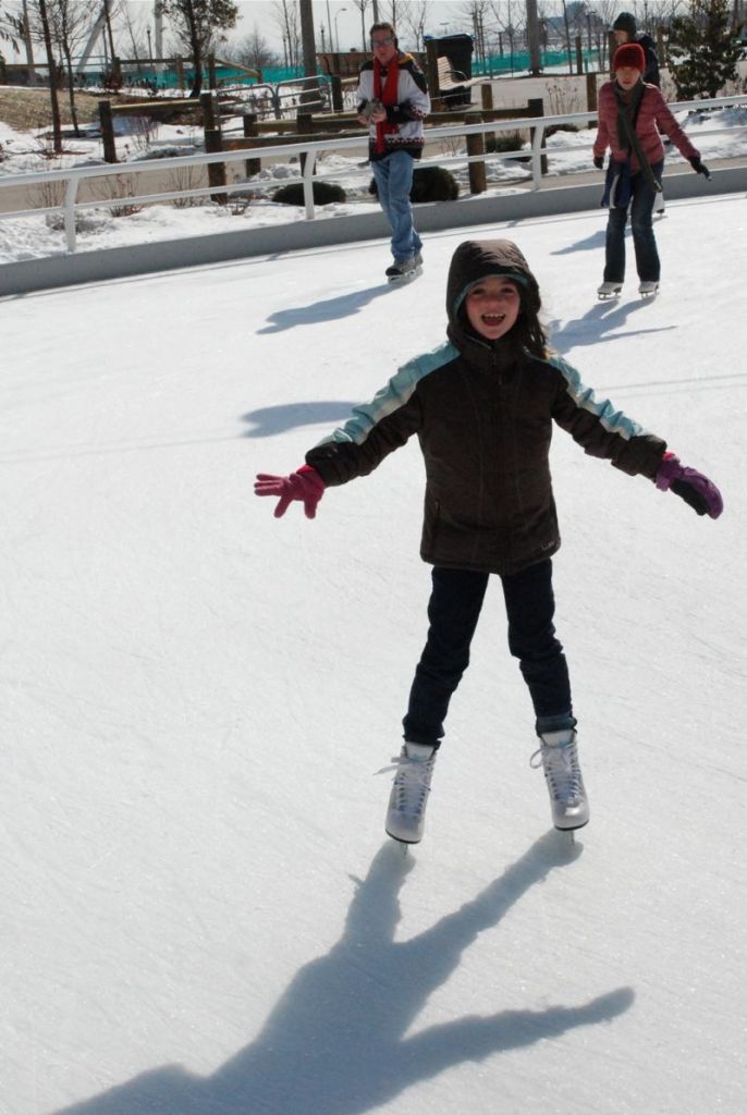 Claire is getting better and better at skating but she still likes to hang on to hands.