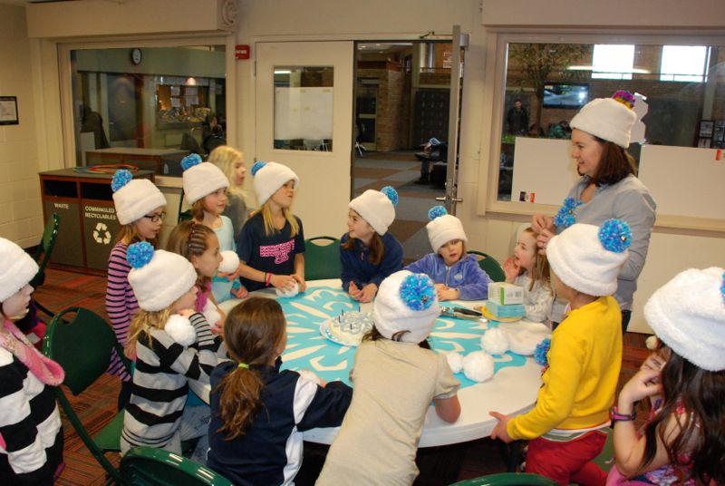 I made pom pom hats for each girl: