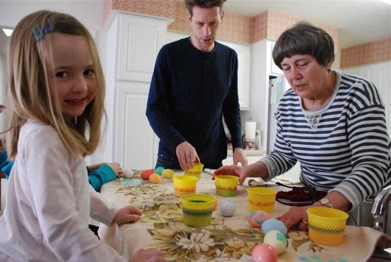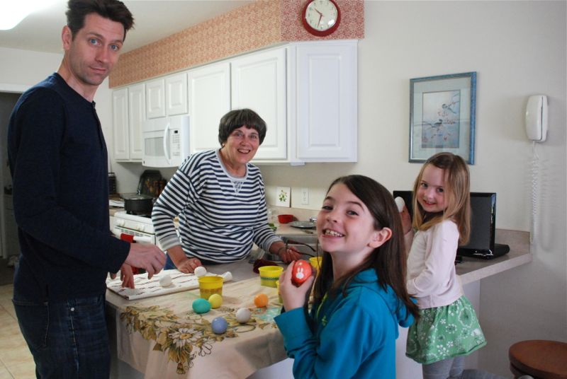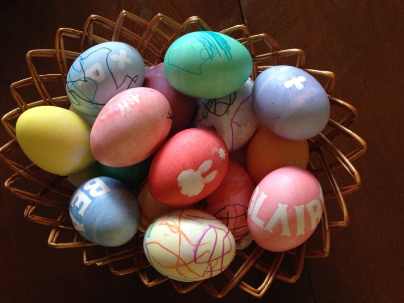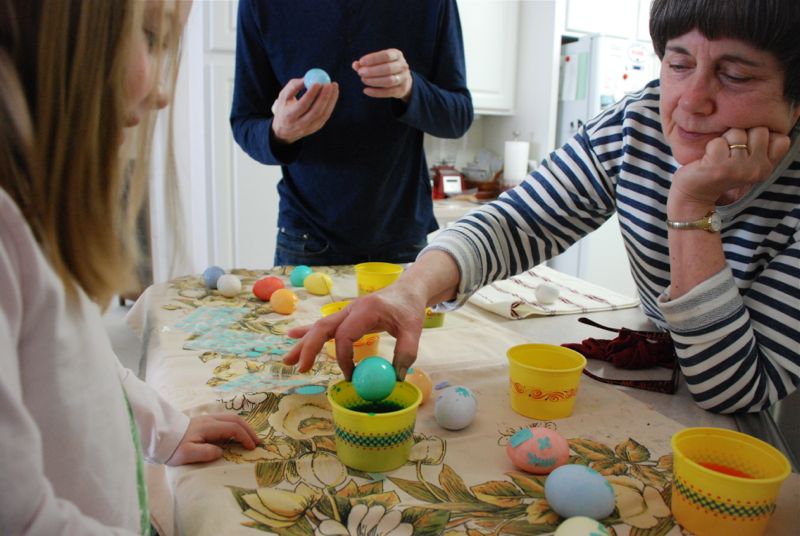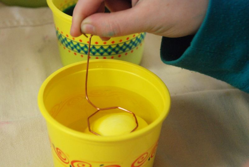 Here we are coloring eggs: