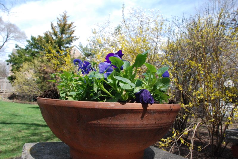 Spring is bringing some changes to our little home landscape. The grass is getting green and flowers are blooming.