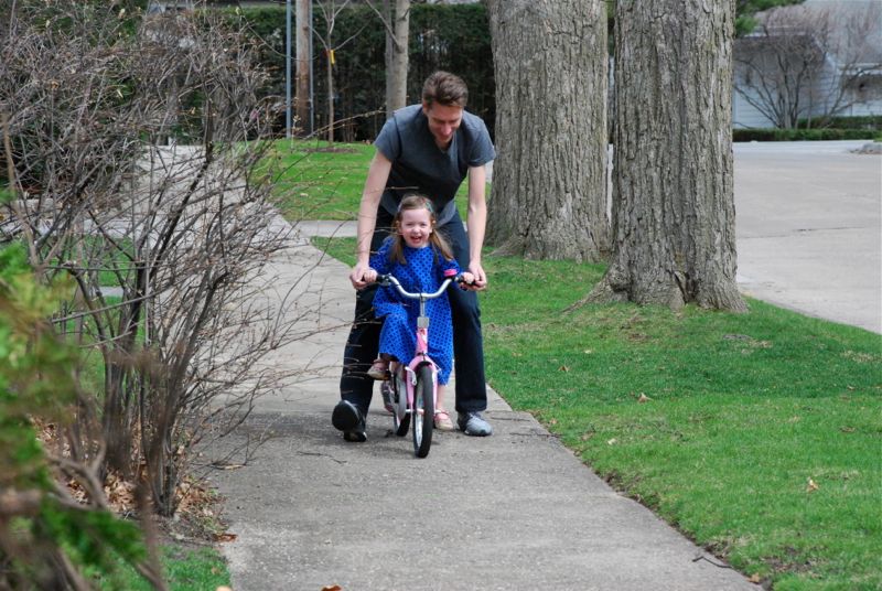 Claire is doing great learning to ride her bike. She does fine pedaling and balancing – she needs practice starting and stopping.