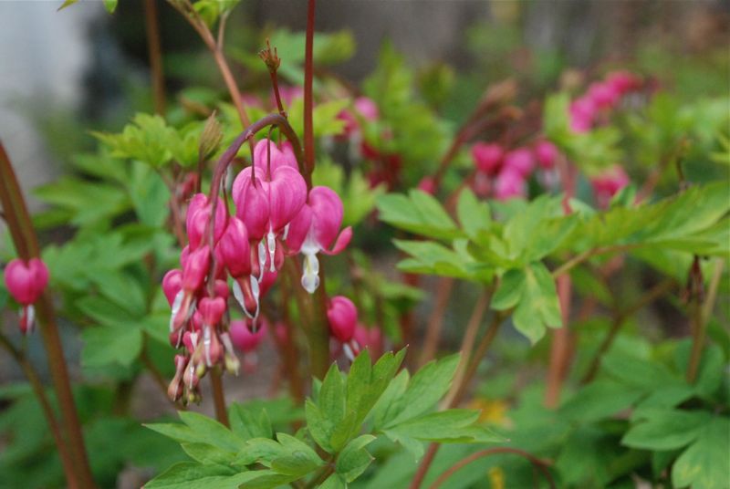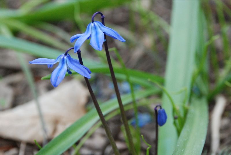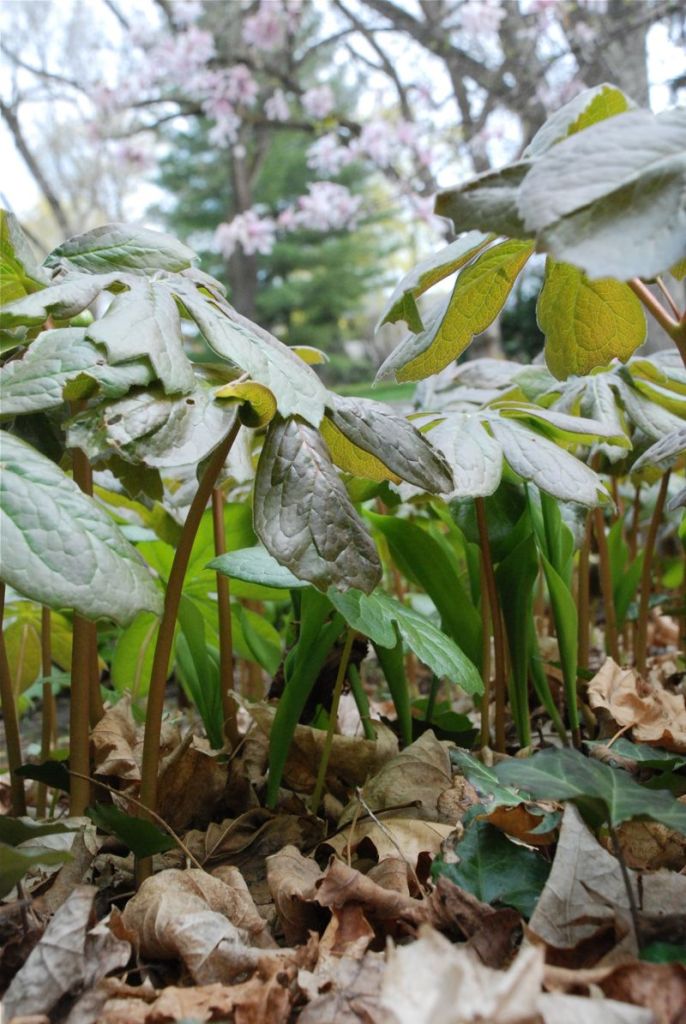 I have some nice shade plants between our house and the neighbors house. They surprised me when we had our first Spring here – they’re not in a spot where I usually look. But now that I know they are there I make time to notice them – Bleeding Hearts, May Apples, Ferns, Trillium and some Squill that I planted.