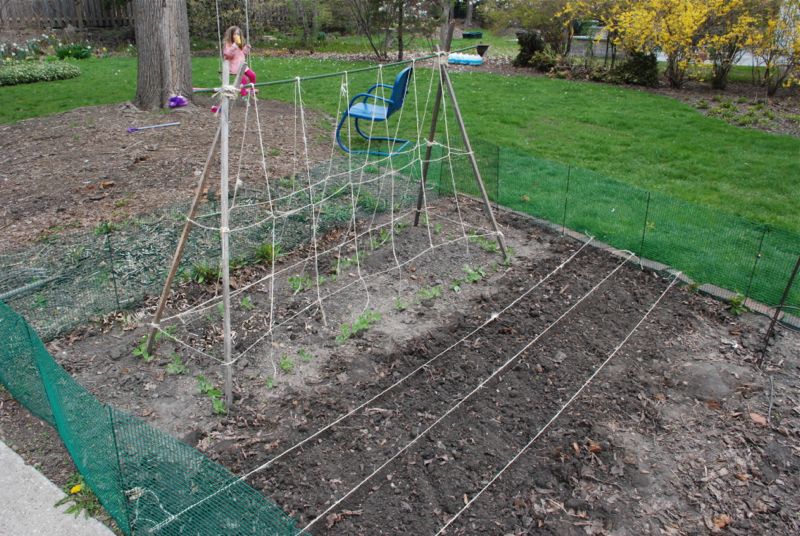 I planted carrots and spinach in my garden today. I don’t have big expectations for the carrots – for some reason I have it in my head that they are hard to grow. But the girls keep asking for carrots so we are giving them a try. Our peas are a few inches tall already – they should be latching onto their trellis soon.