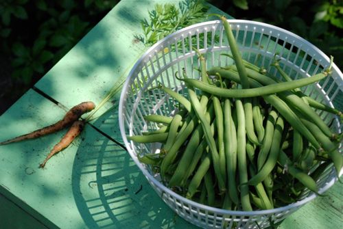 I’ve already picked two big bowls of beans – I love, love, love green beans. Also I thinned out a couple carrots. The rest of them are look promising.