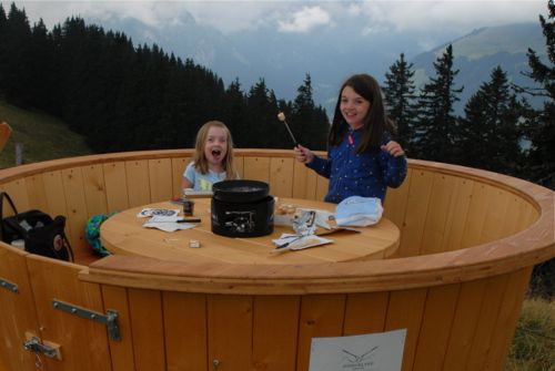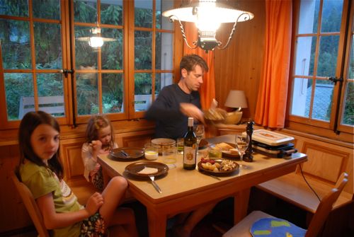 Here we are on the first night in our little chalet. How many rental places come with raclette grills and fondue pots – well probably lots in Switzerland I guess.