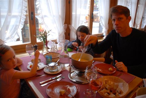 There seemed to be a vein of cheese running through our vacation days. We had raclette three times and fondue twice. The girls and I had a running joke about keeping Daddy from going overboard buying cheese every time we went to the grocery store.