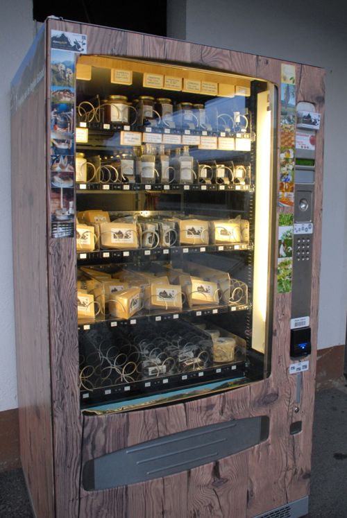 We noticed that you can buy cheese and other dairy products in a vending machine at the train station: