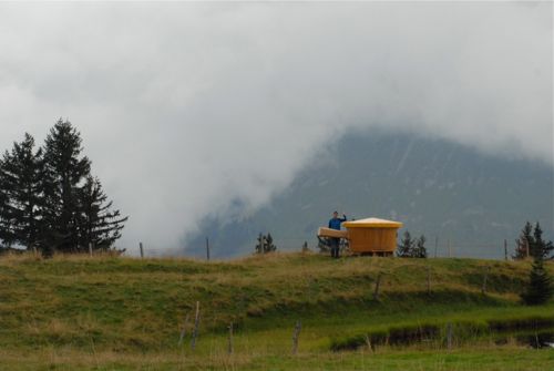 One day we went for a completely cheese themed hike. You can borrow a backpack in the town where we stayed and in the backpack is everything you need to have a fondue feast at the top of a mountain – inside a wooden fondue pot! So we started off with a gondola ride.