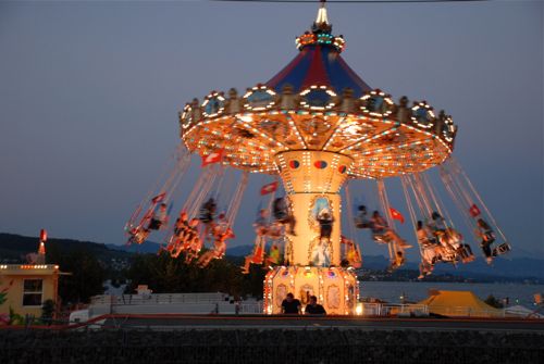 After that we rode across the lake to see a Chilbi – a fair. We were ready to eat Swiss fair food and try some rides just like we used to.