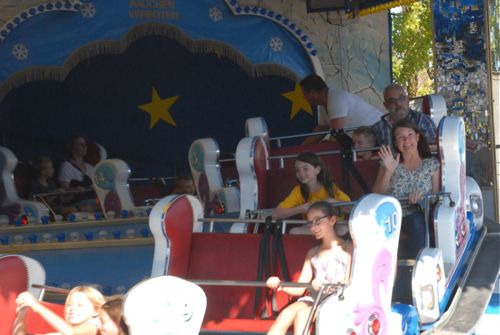 Here’s Bea and I on a fast round and round ride. The kind that goes so fast I can’t hold my head up.