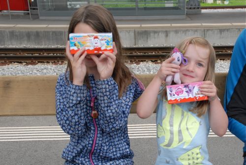 The girls kept begging for Kinder Eggs – they are chocolate eggs with a toy inside. And Claire was overjoyed to find that they were selling My Little Pony Kinder Eggs!!!