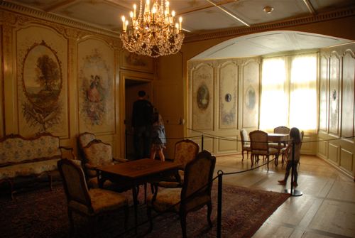 The interior of the castle had decoration from lots of different eras. And one room had the prettiest flowers and butterflies painted on the wall panels.