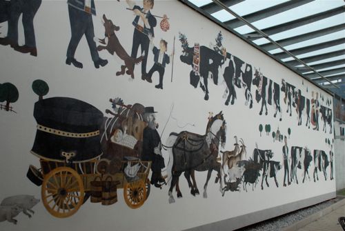 We went to the Cheese museum in Gruyere. They had a really great mural at the museum’s restaurant. And I discovered my new favorite dessert. It’s a local speciality – meringues dipped in double cream.