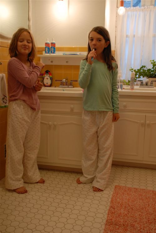 Bea had her best friend over for a sleepover last weekend. To celebrate the start of school we made cupcakes. I also took them to the fabric store and let them pick out fabric and then I made them some new pajamas. Aren’t they cute… and so big!