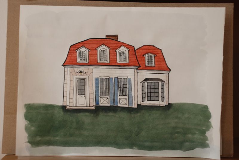 I was inspired, by this wonderful book, to make a painting of my home. The book is called Home and it’s written and illustrated by Carson Ellis.