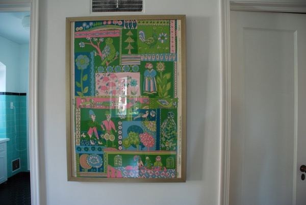 I’ve finally finished our bedroom painting project. No more nightmares from this strange lady peering at us you from all around the room. I did want to preserve the interesting wallpaper so I had a bit of it framed. I researched the wallpaper company and found it was a popular company in the 50s and 60s and it was from a time when it was very popular to use matching wallpaper and fabric. Yup, that describes our whole house – lots of matching wallpaper and fabric.