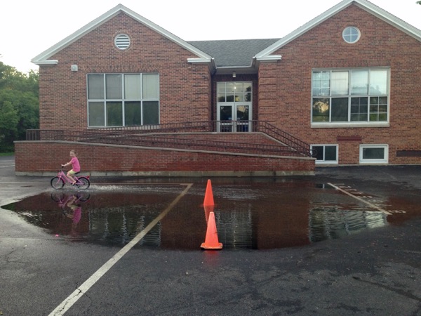 Up above the girls are trying on hats at an L.L. Bean store (Claire was trying to make a cowgirl face). And below they are riding their bikes through a big puddle at their school. Sadly, Claire fell off her bike and got all scraped up right after I took these photos. She’s my accident prone child. Her lip and her knee were bruised for a few days – she’s tough.