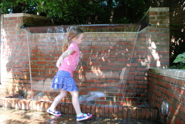 The girls love these two fountains. They are just so cool – the water falls in a pristine clear stream. And the sound is really nice too. It’s fun to stick your hand in and break the perfect plane of water.