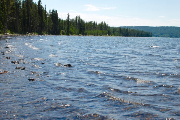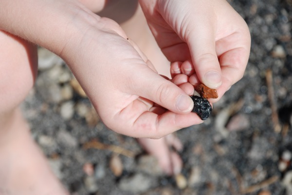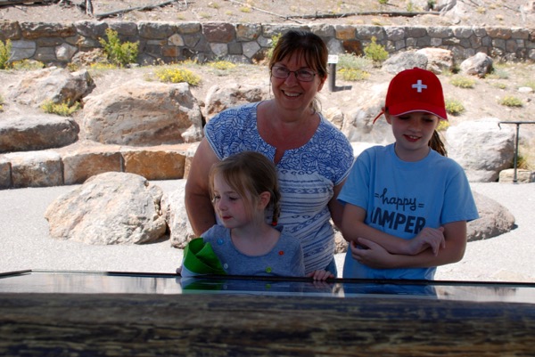On our way out of Yellowstone we stopped at a quiet spot to cool our feet off. The girls had fun finding bits of obsidian with grandpa.