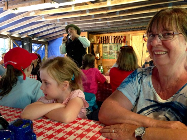The night before we had to leave we did one more super fun Western thing. We went for a chuck wagon ride. You ride out in a covered wagon, have a simple cowboy dinner on picnic tables and then you get to watch a cowboy show. Lots of slapstick humor that the girls loved and some great music too. On our way out we sat in the back of our wagon and I had a great view of the big strong horses pulling the wagon that was behind us. I want to be a cowgirl!