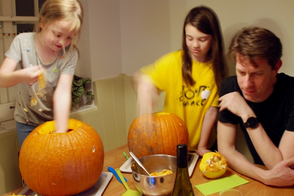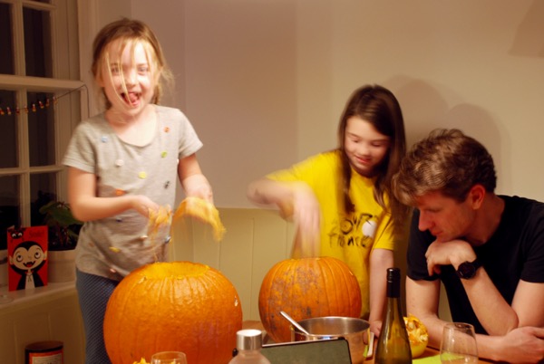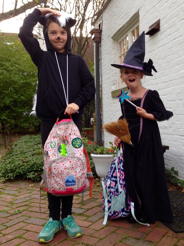 I didn’t really take any pictures on Halloween night but I took a few of our pumpkin carving and of the girls before school. We finally had some nice Halloween weather. Before we headed out I invited everyone over for pizza and it was fantastic not to be cringing at the state of my kitchen like I did before the remodel. Bea and her friends were ready to trick-or-treat all by themselves but we parents followed along because it was nice to be out. Claire got to go with a friend instead of tagging along with Bea’s gang this year. They are getting so big.