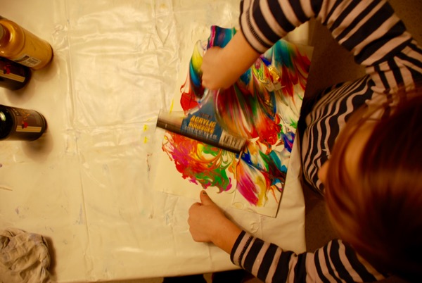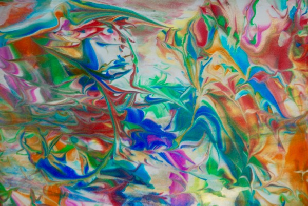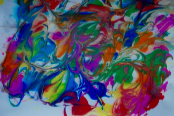 This time of year I need some color – so the girls and I did some paper marbling. You can find directions online – it’s really fun and easy! I recently bought some liquid watercolor paints that are perfect for dribbling onto the shaving cream. I also bought a gold paint that looks beautiful mixed with the bright colors.